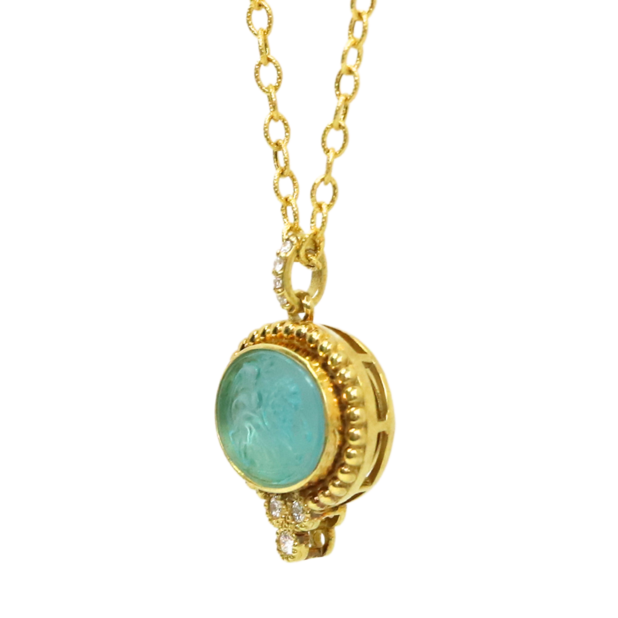 14k Achilles Aqua Venetian Glass And .15ctw Diamond Necklace