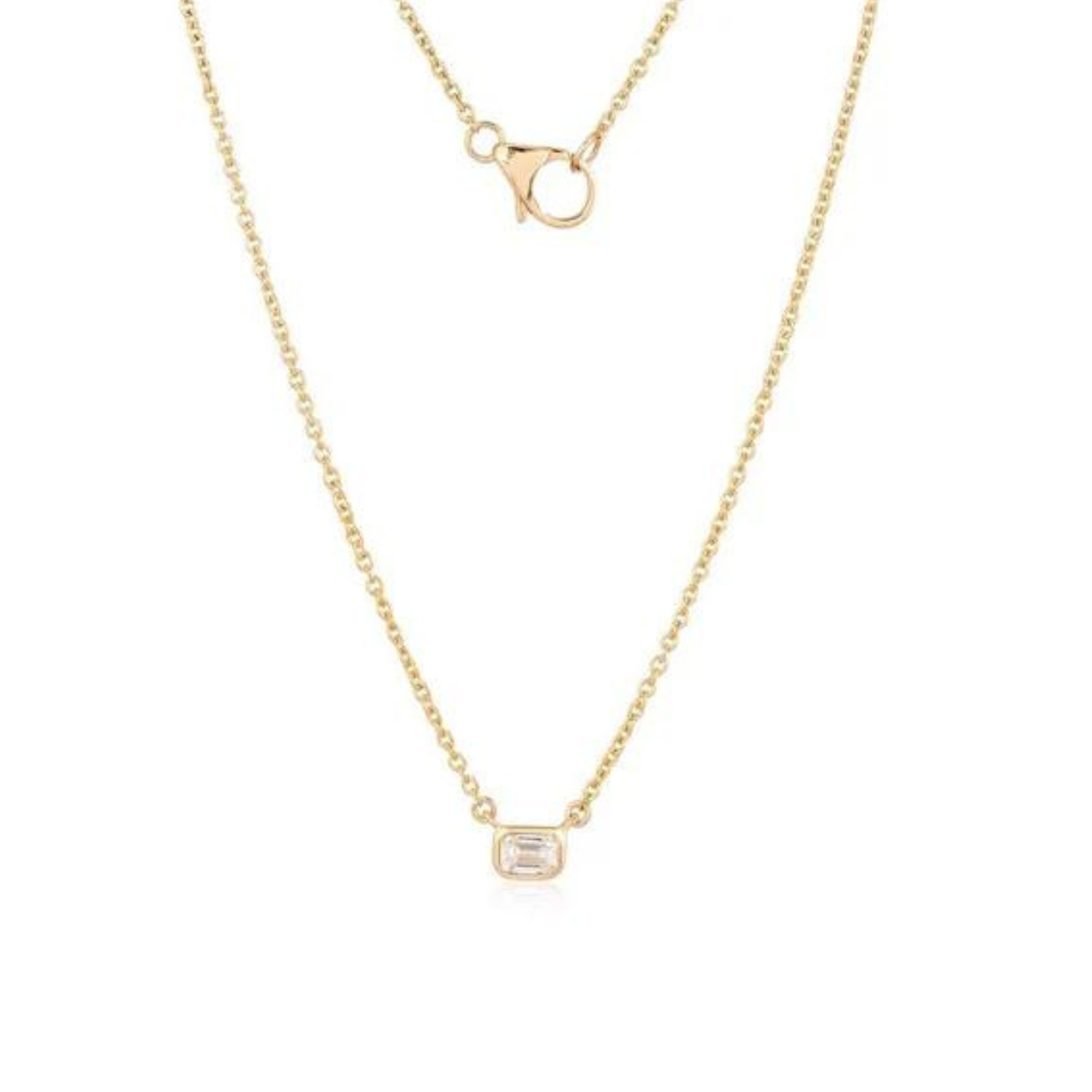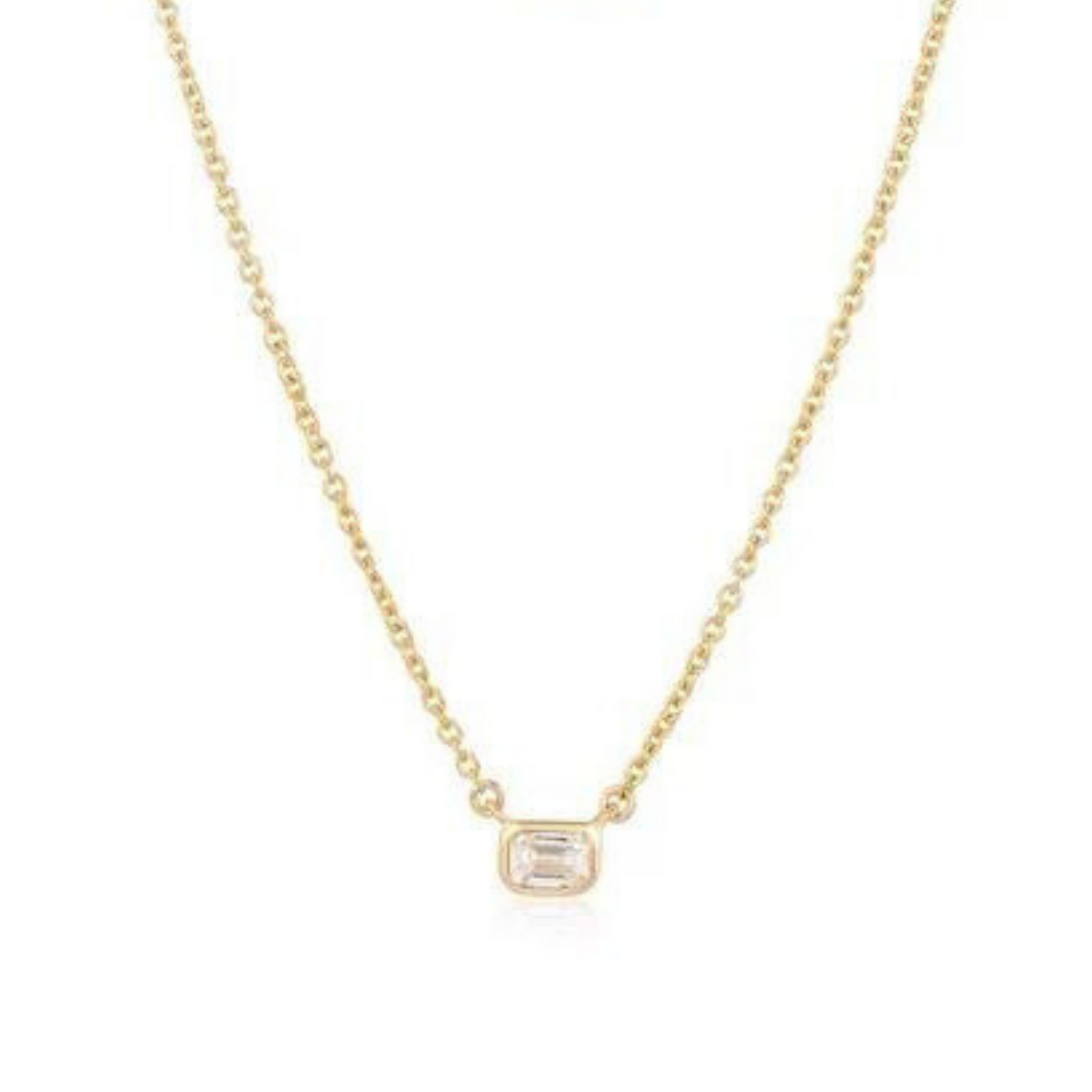 14ky 16+2" .22ct Emerald Cut Diamond Solitiare Necklace