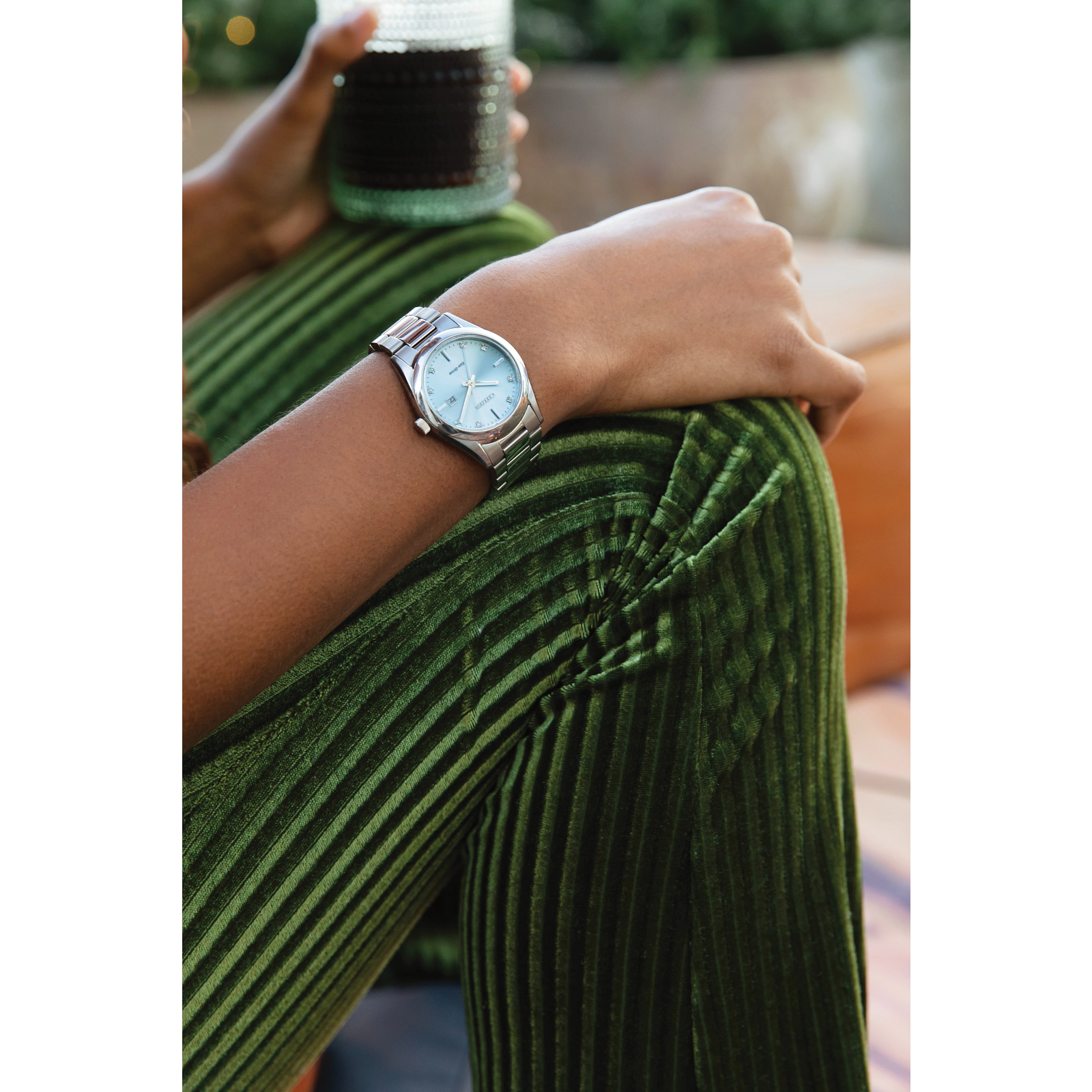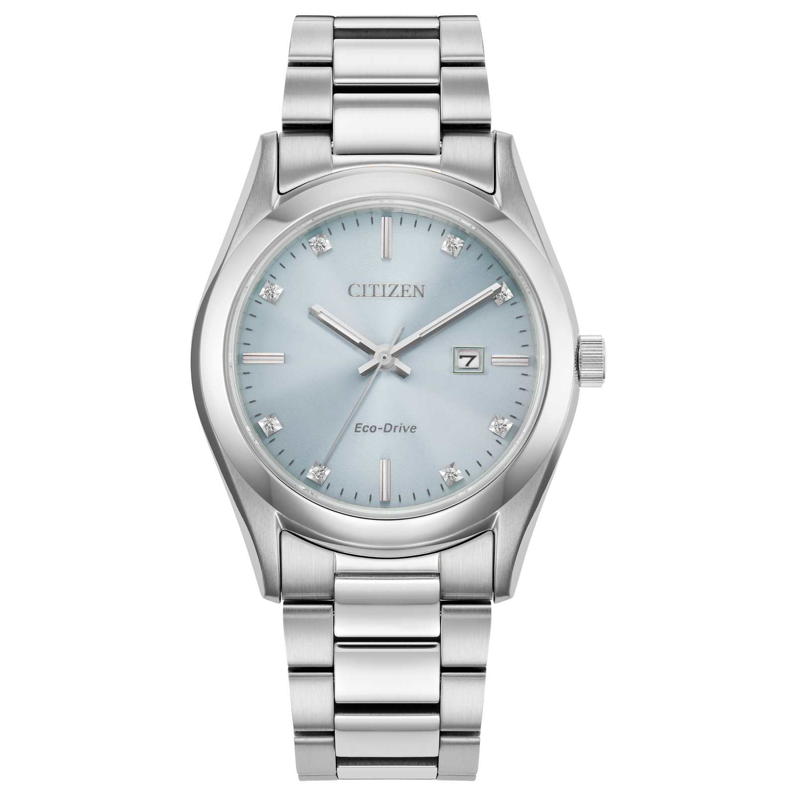 When sporty style meets luxury, you get this latest stunner from Citizen. Joining ready-for-anything wearability with feminine elegance, this time-and-date timepiece is the ultimate day-to-evening watch to wear. The silver-tone stainless steel case measures 33mm in diameter and is presented on a silver-tone, 3-link stainless steel bracelet for a sleek, versatile wear on the wrist. The radiant blue dial is characterized by its highly legible style and diamond accents, elevating the sporty wearer one step further. A water resistance up to 100 meters helps the dynamic watch maintain a host of functionality without compromising its alluring appearance. Powered by Citizen’s proprietary Eco-Drive technology to provide light-powered vitality continuously and sustainably without ever needing a battery. Caliber E013.